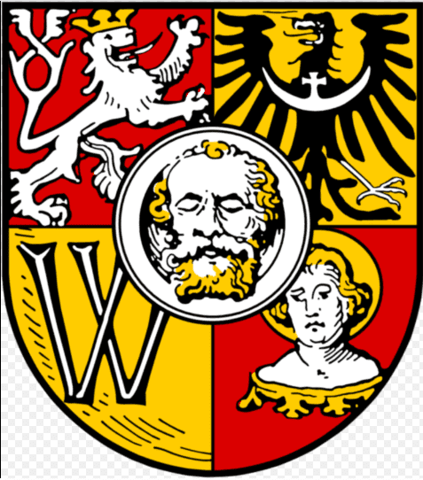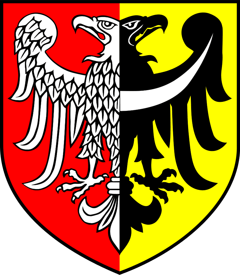 Lewy górny róg przedstawia śląskiego orła na złotym polu. Na piersi i skrzydłach orła znajduje się również biały pas z krzyżem, który jest związany z imieniem Henryk. We Wrocławiu było wielu książąt o tym imieniu, możesz przeczytać o nich więcej tutaj.